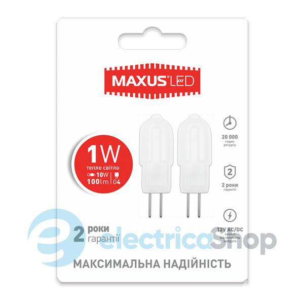Светодиодная лампа MAXUS G4 1W 3000K 12V AC/DC (2-LED-205)