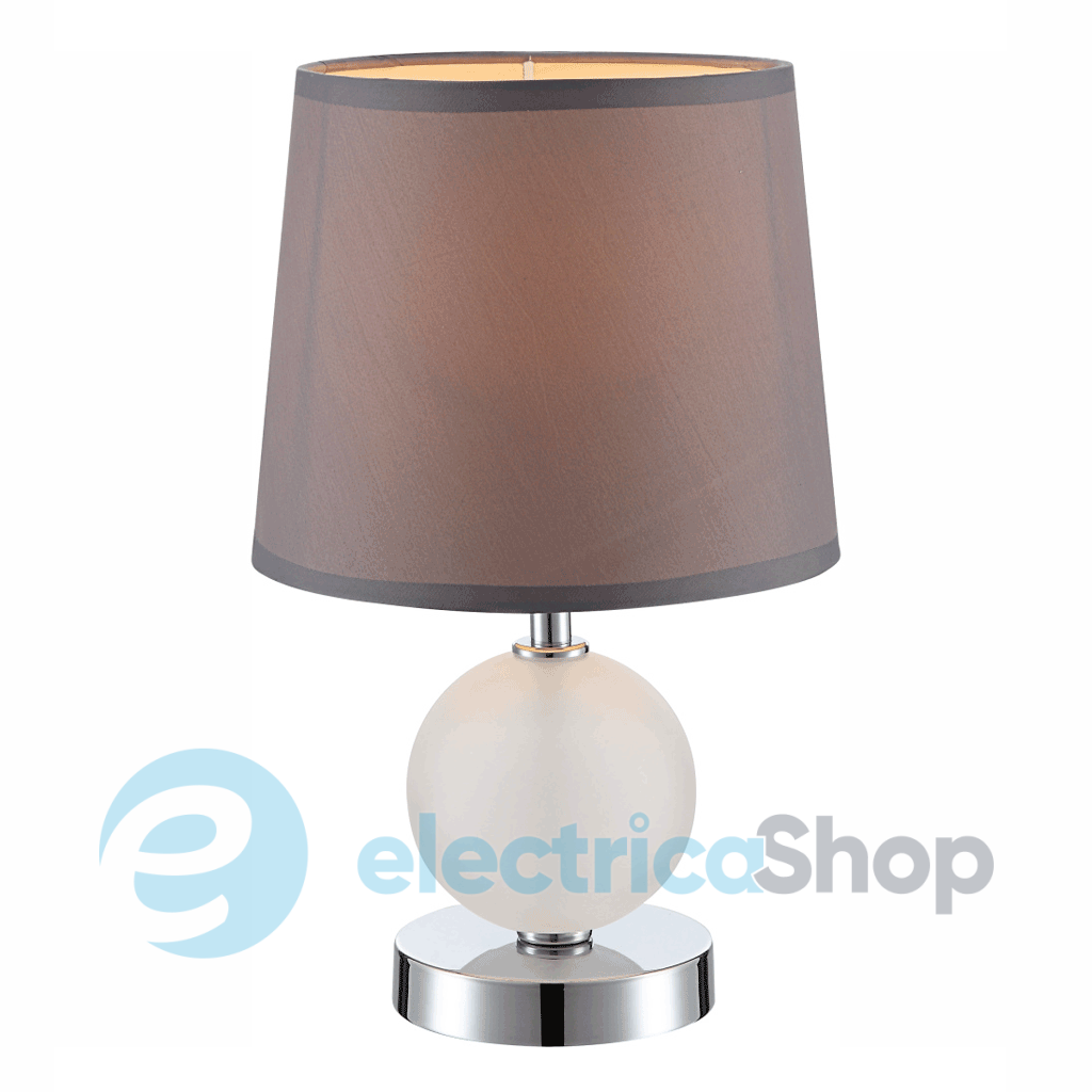 Настольная лампа 21669 торговой марки Globo™ из коллекции VOLCANO с металлической хромированной основой и текстильным плафоном серо-коричневого цвета.
