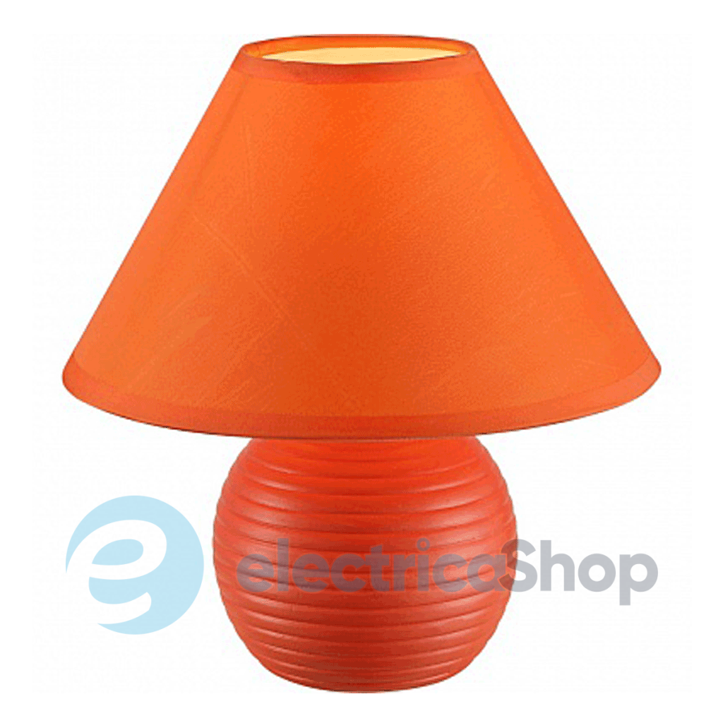 Настольная лампа 21683 торговой марки Globo™ из коллекции TEMPLE с оранжевой керамической основой и тканевым плафоном оранжевого цвета.