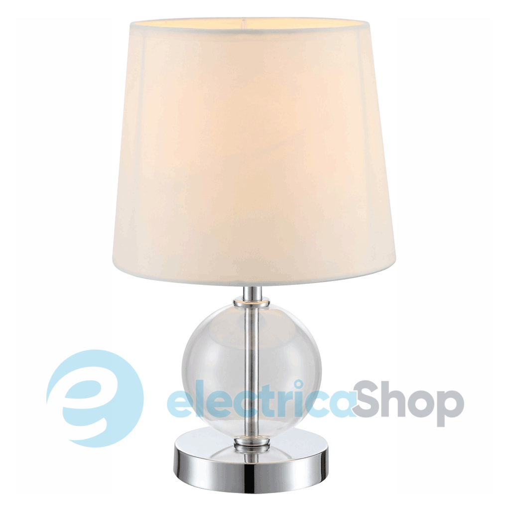 Настольная лампа 21667 торговой марки Globo™ из коллекции VOLCANO с металлической хромированной основой и текстильным плафоном белого цвета.