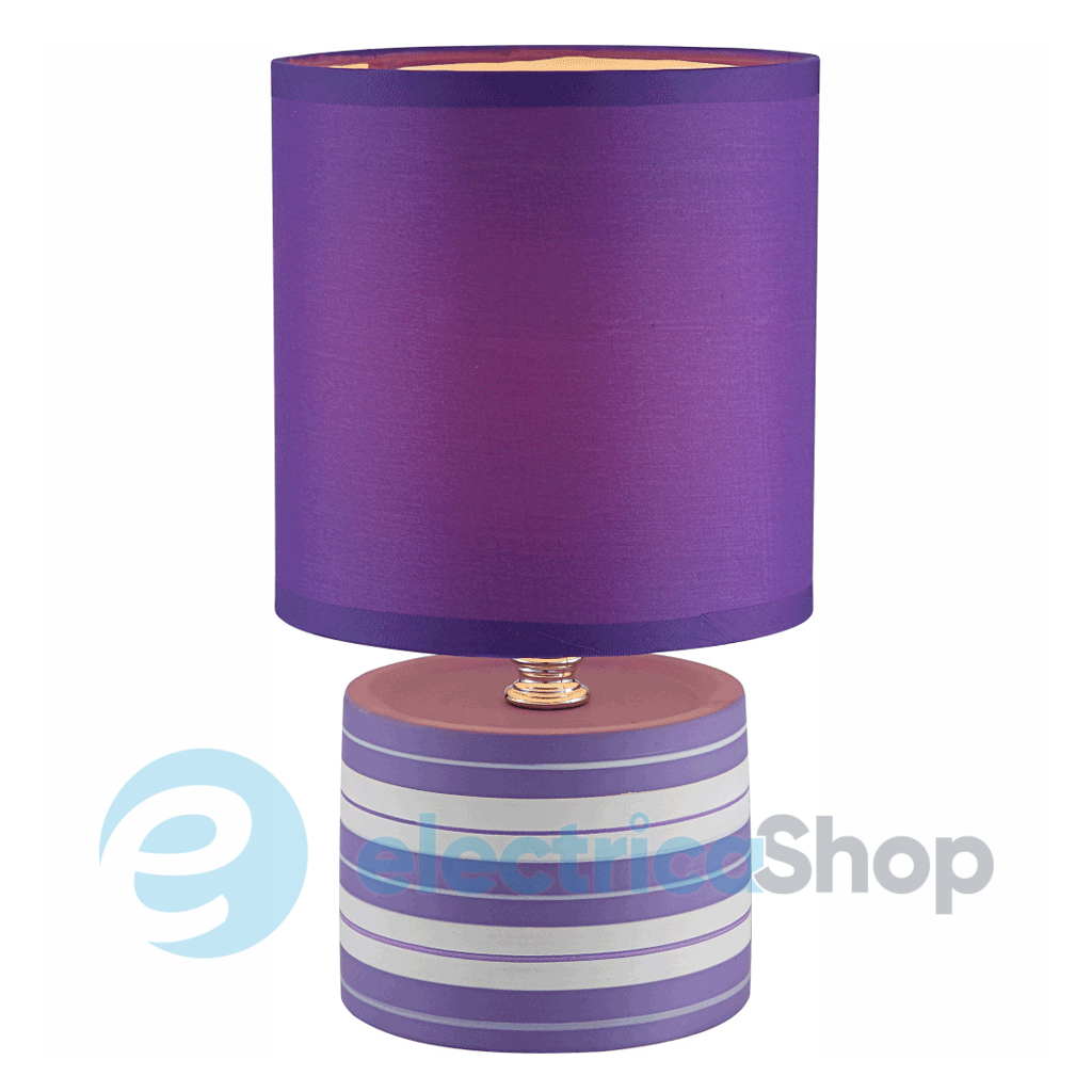 Настольная лампа 21661 торговой марки Globo™ из коллекции LAURIE с фиолетовой основой из керамики и тканевым плафоном фиолетового цвета.