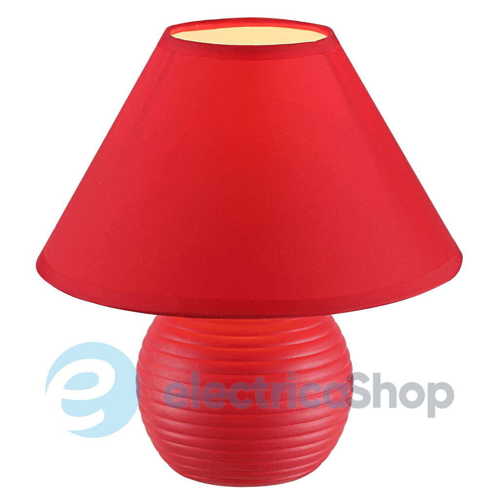 Настольная лампа 21680 торговой марки Globo™ из коллекции TEMPLE с красной керамической основой и тканевым плафоном красного цвета.