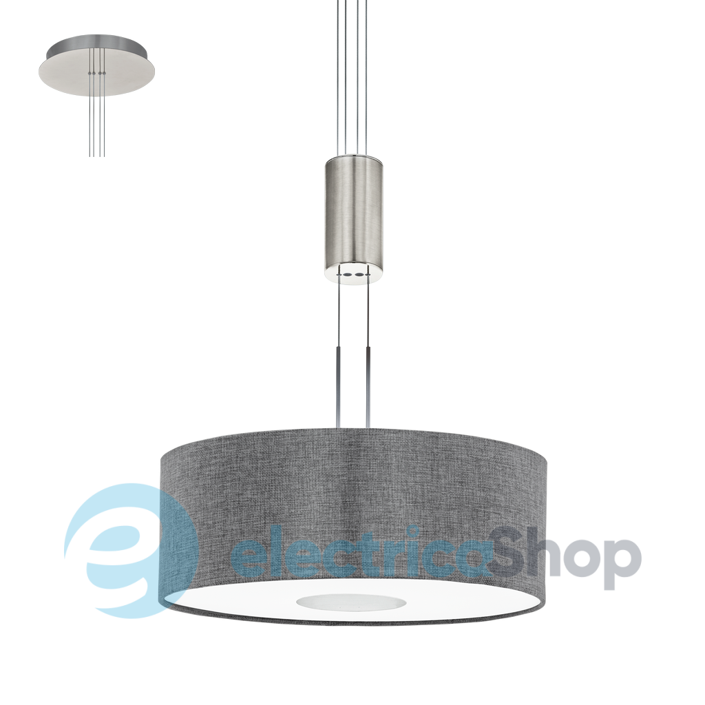 Авангардный подвес 95347 EGLO из серии – «ROMAO». Основание выполнено из стали в цвете никель матовый, хром, а плафон - из ткани и полотна натурального цвета. Осветительный прибор можно регулировать по высоте. Подвес ROMAO 2 – это интерьерная лампа из коллекции подвесных светильников Eglo.