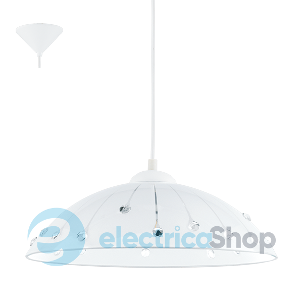 Люстра 96073 EGLO из серии «VETRO». Основание этого подвеса выполнено из пластика, а плафон - из сатинового стекла, декорированного хрусталиками. Подвес Eglo VETRO – это интерьерная лампа из коллекции подвесных светильников Eglo.