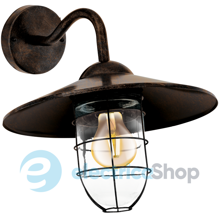 Уличное бра 94863 австрийского бренда Eglo™ из коллекции «MELGOA». Основание выполнено из стали медного цвета. Плафон прозрачный из стекла.