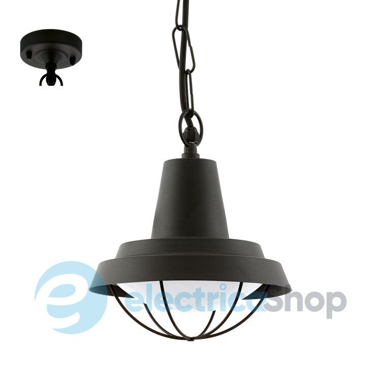 Уличный подвес 94861 австрийского бренда Eglo™ из коллекции «COLINDRES 1». Основание подвеса выполнено из стали черного цвета. Плафон белый из пластика.