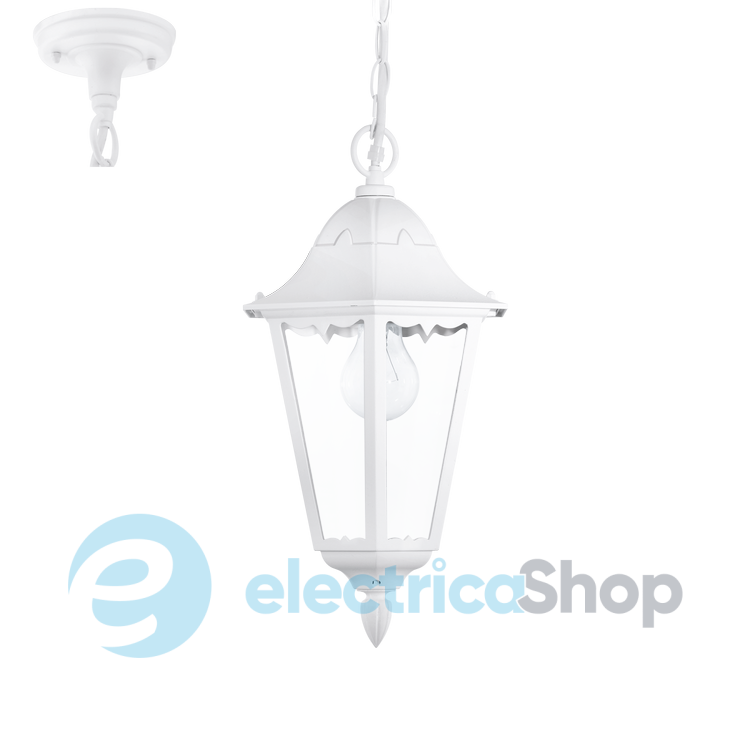 Уличный подвес 93444 австрийского бренда Eglo™ из коллекции «NAVEDO». Основание подвеса выполнено из алюминия белого цвета. Плафон прозрачный из стекла.