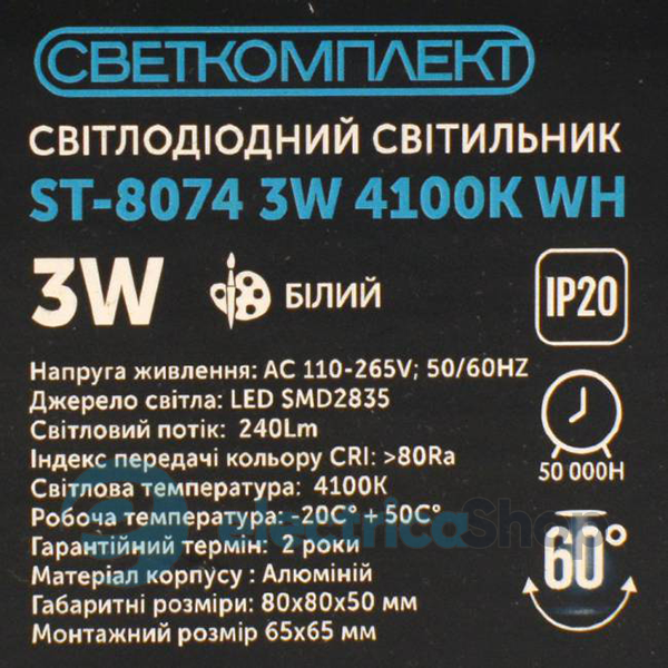 - Мощность светильника, Вт: 3