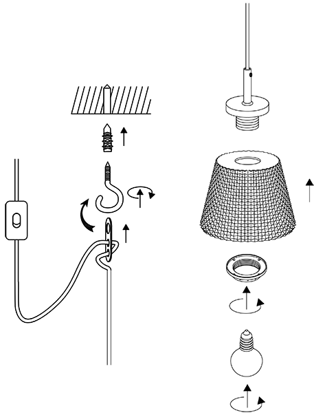 Светильник также может быть укомплектован потолочной чашей.Схема установки светильника