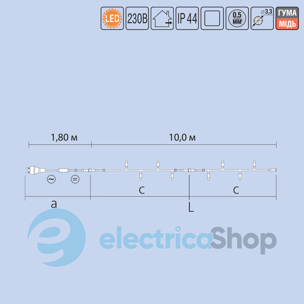 Новогодняя уличная гирлянда серии «STRING». Размеры гирлянды: 1,8+10 м (2 модуля х 5 м).