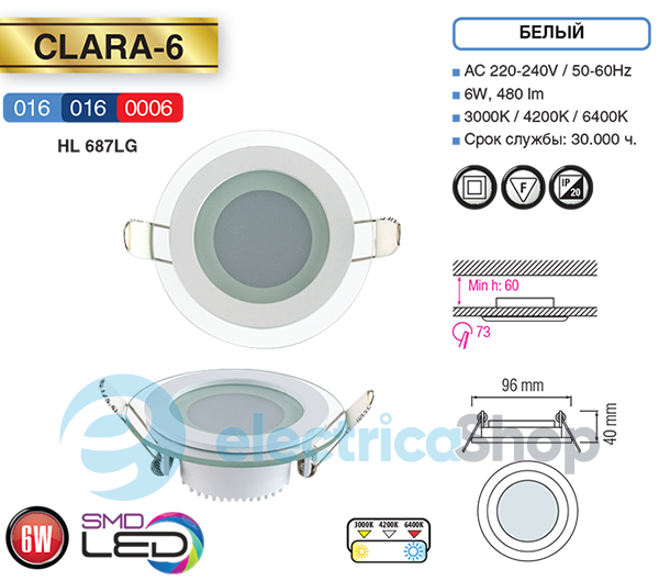 Cветодиодный врезной светильник Horoz 016-016-0006 Clara-6 предназначен для освещения современных офисов и жилых помещений.