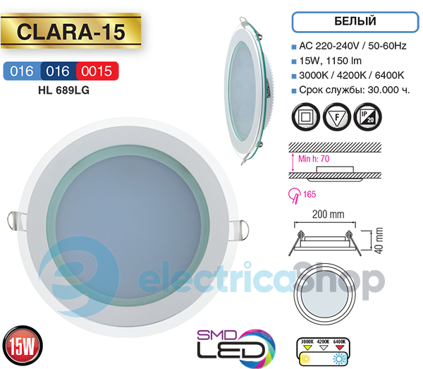 Cветодиодный врезной светильник Horoz 016-016-0015 Clara-15 HL 689LG предназначен для освещения современных офисов и жилых помещений.