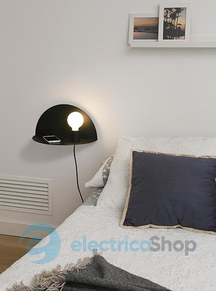 Такой светильник не только станет интересным дизайнерским акцентом в интерьере, но и будет нести функциональную нагрузку – на полочку можно положить небольшие предметы, например, книгу.