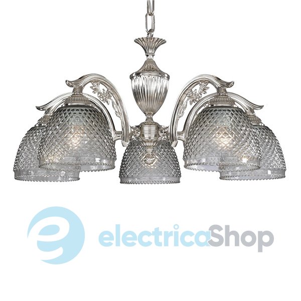 Люстра RECCAGNI ANGELO L 9801/5 Nichel Vetro Fume будет хорошо смотреться в гостиной, столовой, спальне и других классических интерьерах. Выполнена из стекла и металла.