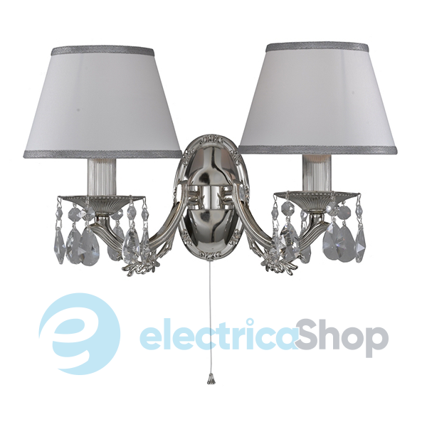 Бра RECCAGNI ANGELO A 9832/2 Nichel Paralume bianco, cristalli trasparenti будет хорошо смотреться в гостиной, столовой, спальне и других классических интерьерах. Основание выполнено из металла (мельхиоровое покрытие), абажур текстильный (белый с мельхиоровой каймой), подвески - из прозрачного хрусталя SCHOLER (Австрия).