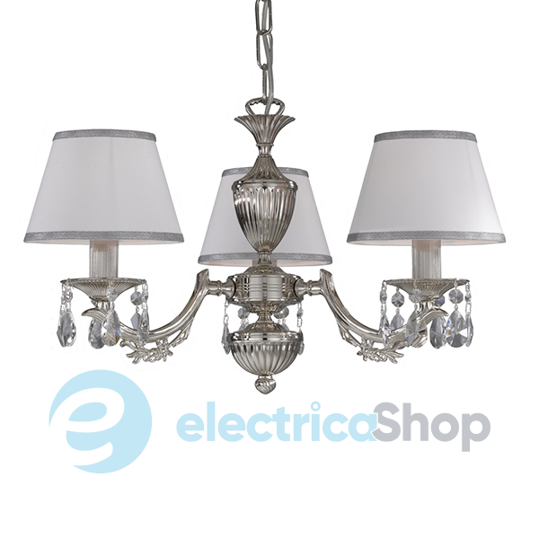 Люстра RECCAGNI ANGELO L 9832/3 Nichel Paralume bianco, cristalli trasparenti будет хорошо смотреться в гостиной, столовой, спальне и других классических интерьерах. Основание выполнено из металла (мельхиоровое покрытие), абажур текстильный (белый с мельхиоровой каймой), подвески - из прозрачного хрусталя SCHOLER (Австрия).