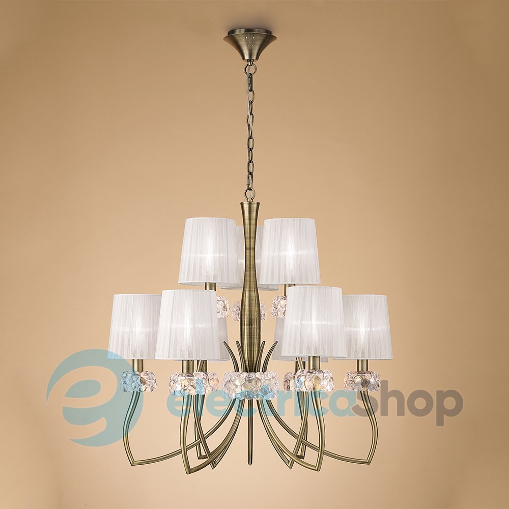 Люстра Mantra LOEWE 4730 будет шикарно выглядеть в классических и современных интерьерах. Плафоны выполнены из органзы, декоративные элементы – из стекла, основание – из металла.