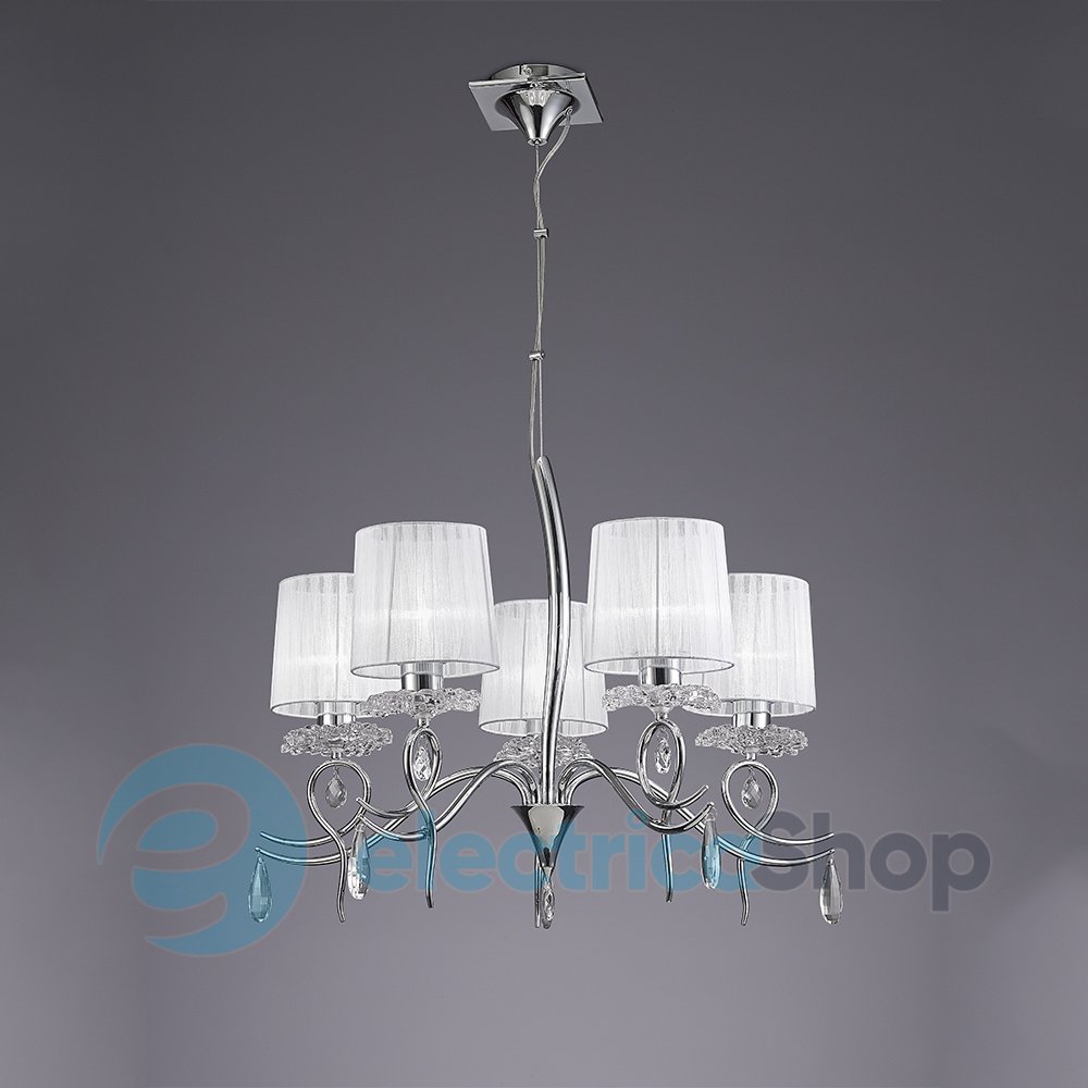 Люстра Mantra LOUISE 5271 будет здорово смотреться в классических и современных интерьерах. Основание выполнено из хромированного металла, плафон – из ткани, а подвески – из стекла.