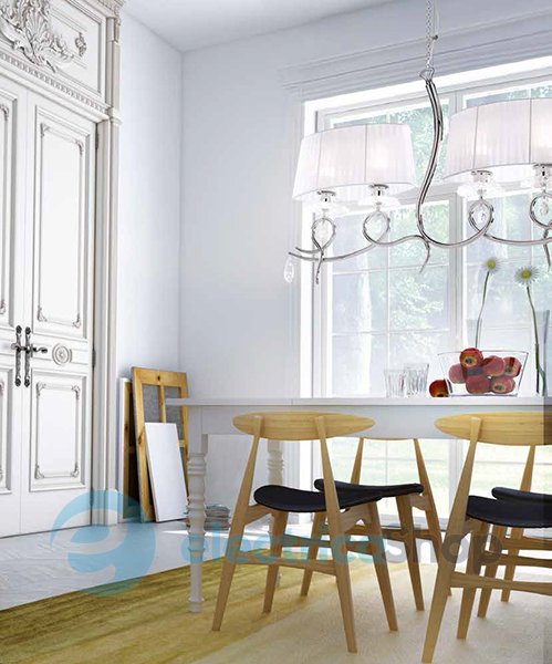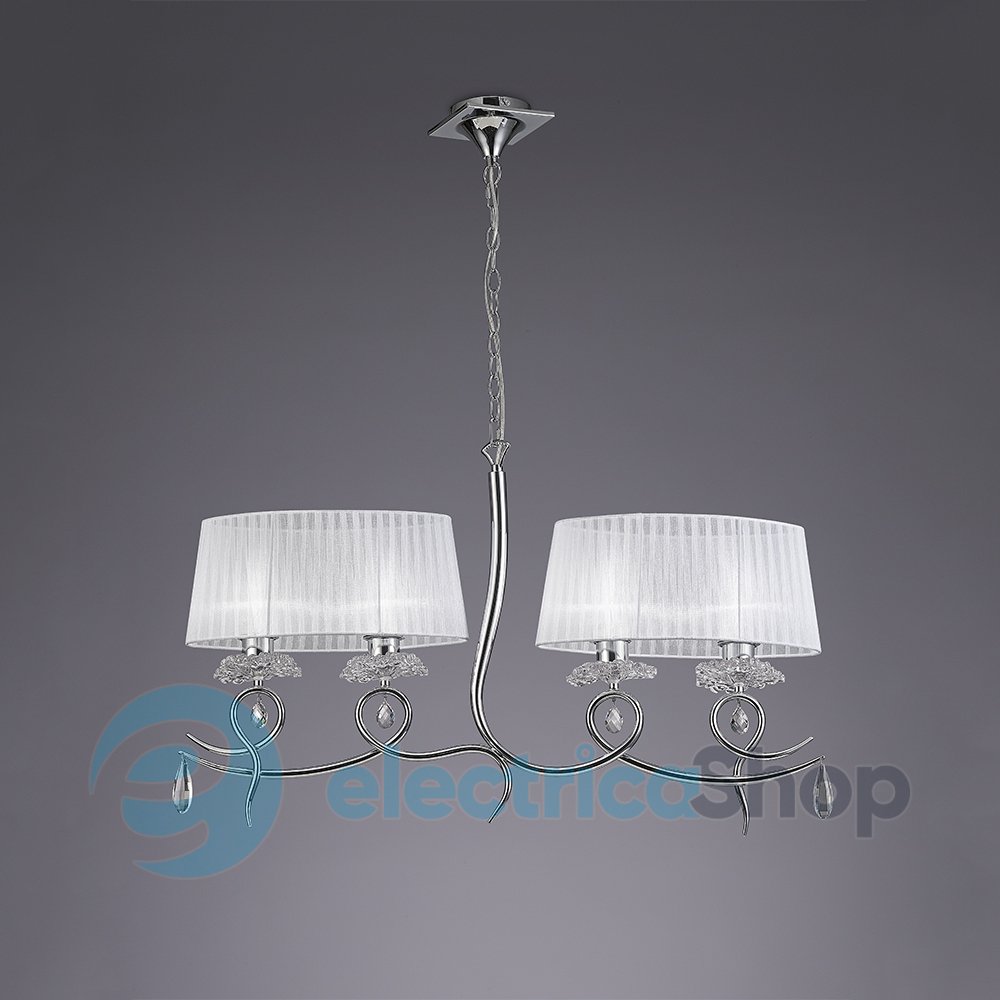 Люстра Mantra LOUISE 5272 будет здорово смотреться в классических и современных интерьерах. Основание выполнено из хромированного металла, плафон – из ткани, а подвески – из стекла.
