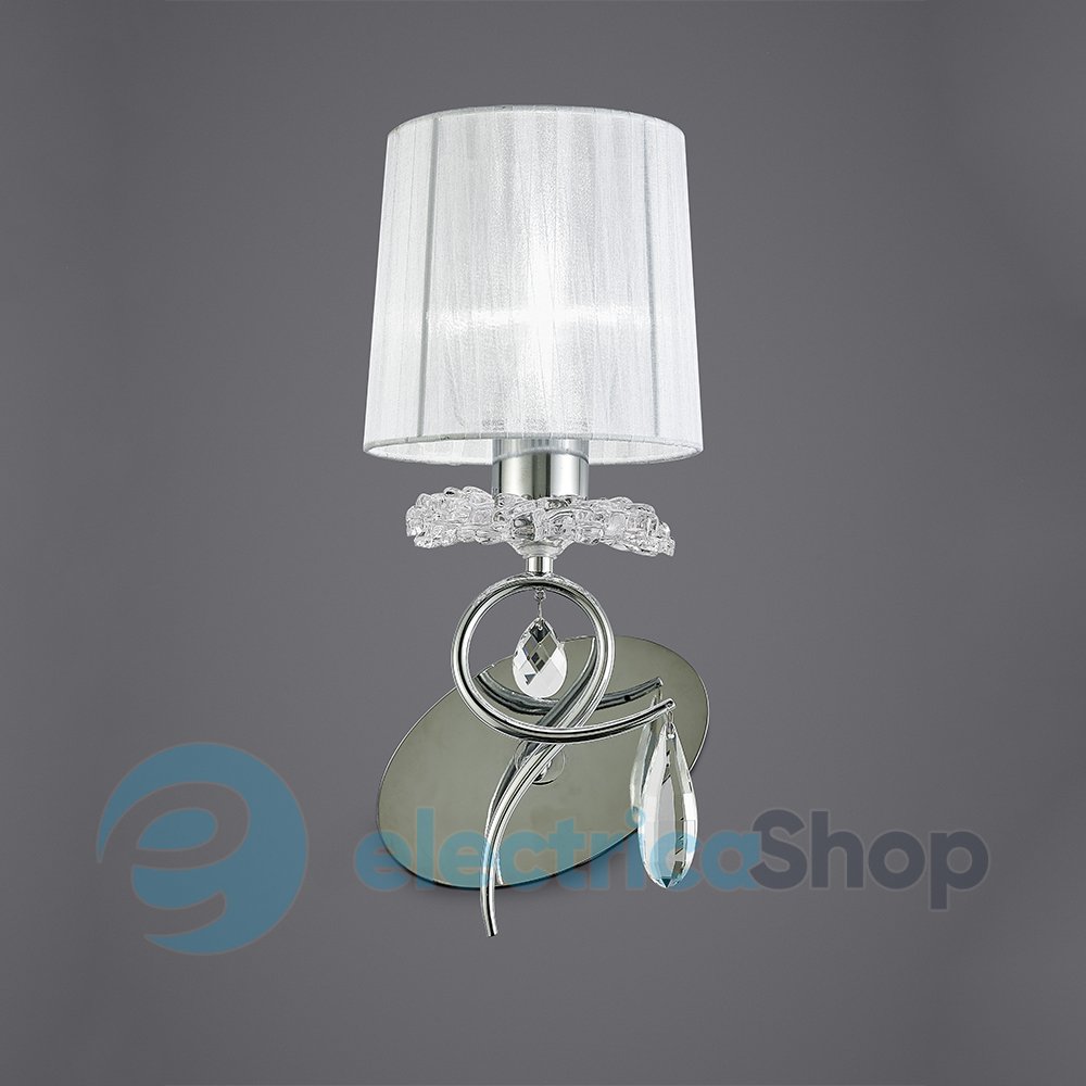 Светильник Mantra LOUISE 5277 будет здорово смотреться в классических и современных интерьерах. Основание выполнено из хромированного металла, плафон – из ткани, а подвески – из стекла.