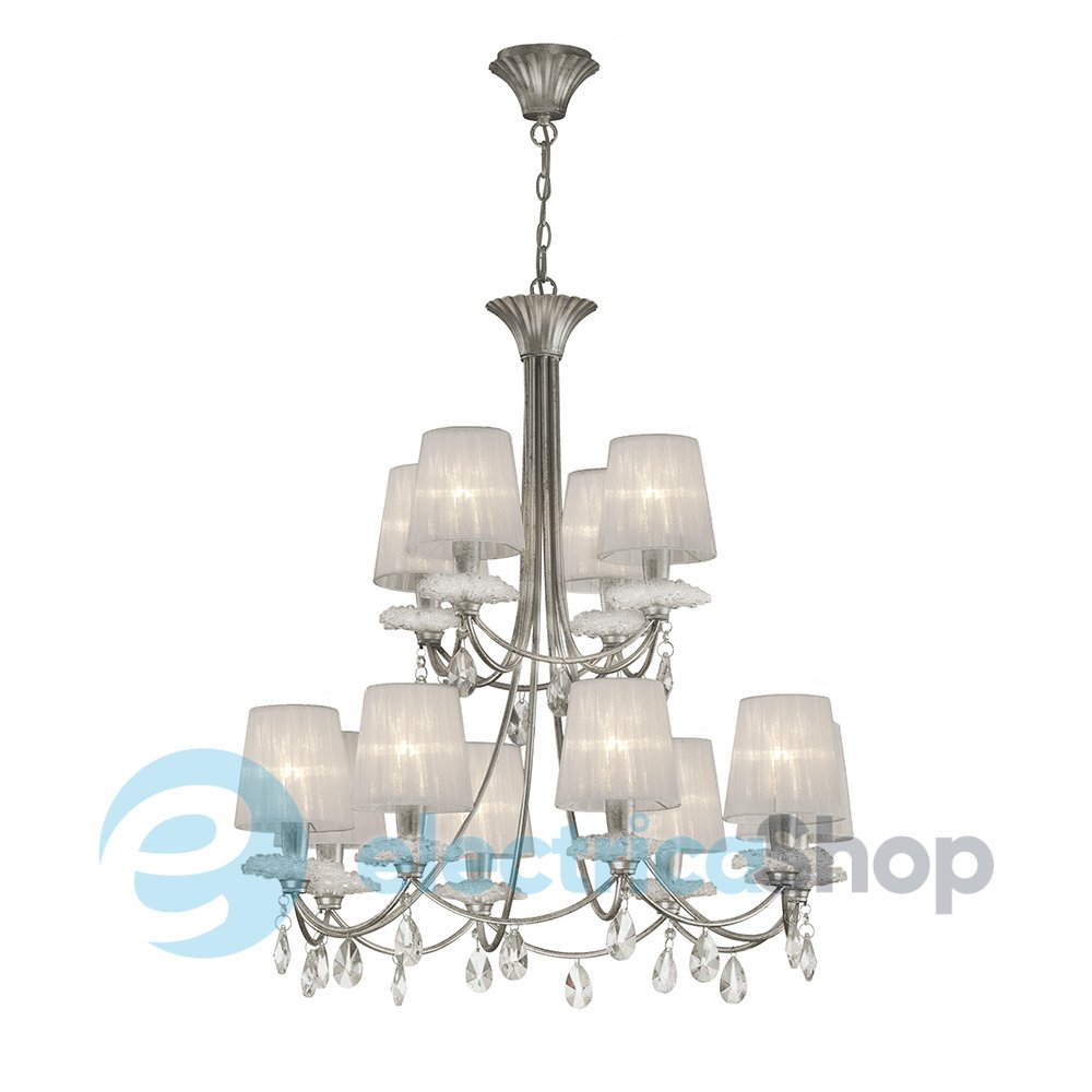 Люстра Mantra SOPHIE SILVER 6300 будет здорово смотреться в классических и современных интерьерах. Основание металлическое, плафоны текстильные, декорированные подвесками в виде капель.