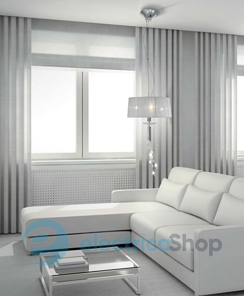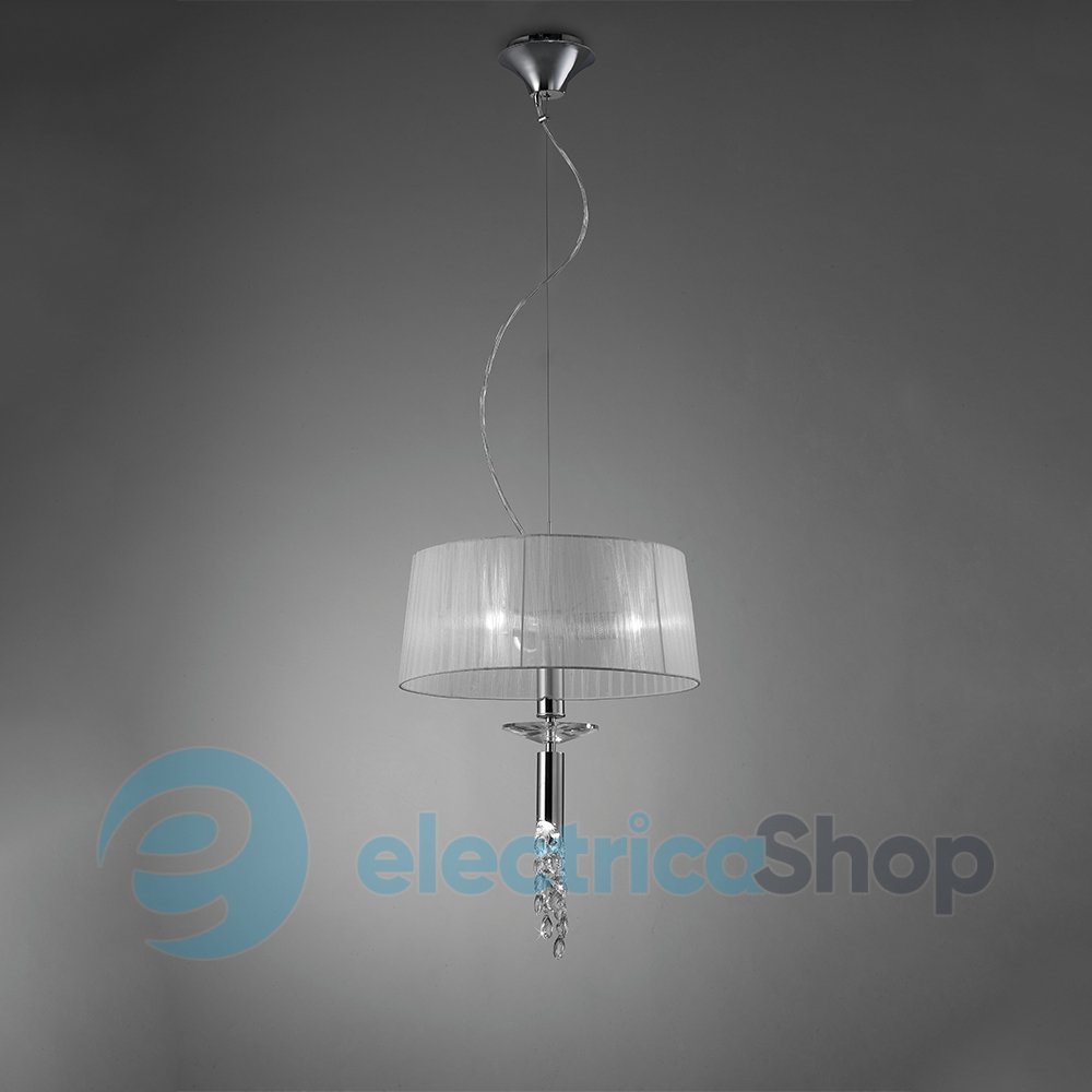 Роскошная люстра Mantra TIFFANY 3858 будет здорово смотреться в классических и современных интерьерах. Арматура выполнена из хромированного металла, плафоны – из органзы, подвески – из стекла.