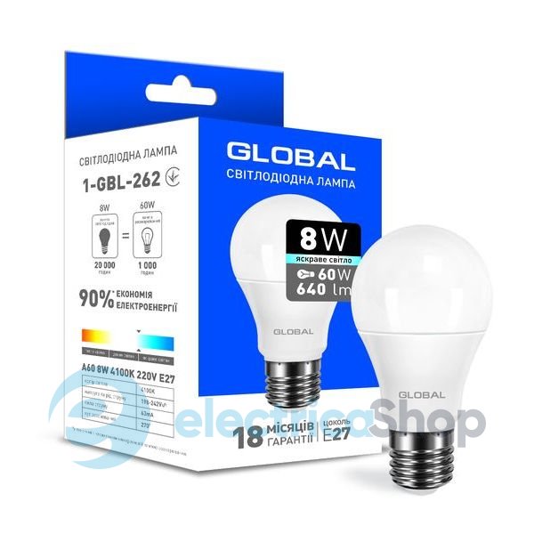 Описание led-лампы Global 1-GBL-262 A60 8W 4100K