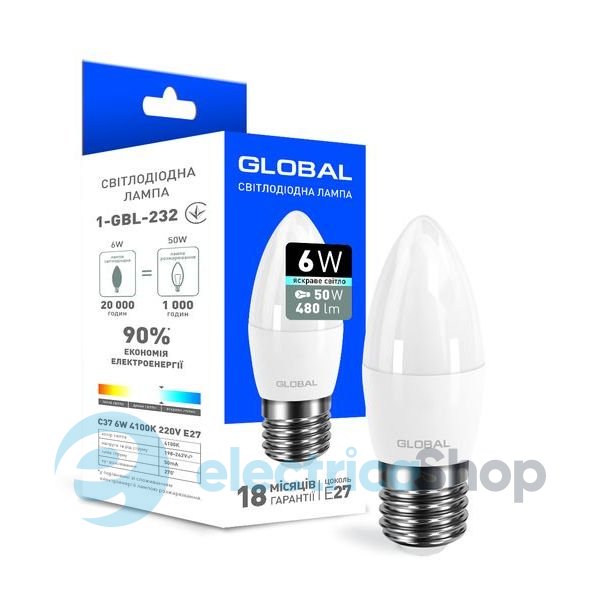 Описание led-лампы Global 1-GBL-232 C37 CL-F 6W 4100K