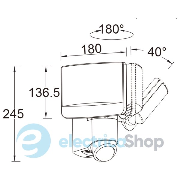 Датчик движения имеет угол обзора 180° и дальность обнаружения до 18 метров. Время задержки отключения светильника можно устанавливать в диапазоне 1 - 3 - 10 минут.
