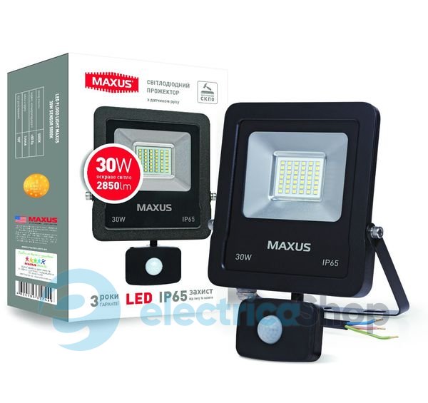 Автоматическое включение при установленном уровне освещенности, настраивается в диапазоне от 10 до 2000 люкс.Преимущества светодиодного прожектора MAXUS Flood Light 1-MAX-01-LFL-3050s
