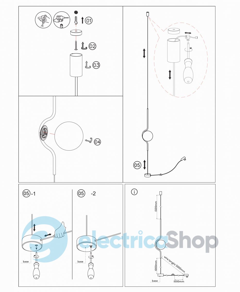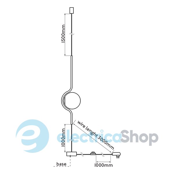 Максимальная высота – 3080 (включая 1500+1000 мм кабеля), минимальная – 580 мм (кабель может быть полностью скрыт).