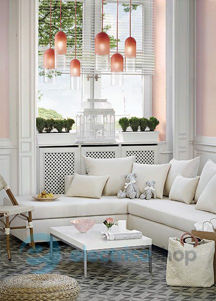 - Цвет плафонов: Коралловый, Оранжевый, Прозрачный
