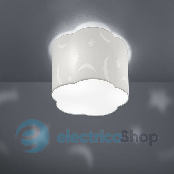 Потолочный светильник TRIO 602300101 MOONY дополнит интерьер любой детской комнаты, создаст красивый световой акцент. Европейское соответствие (СЕ). Благодаря узору на плафоне создает эффект звездного неба.