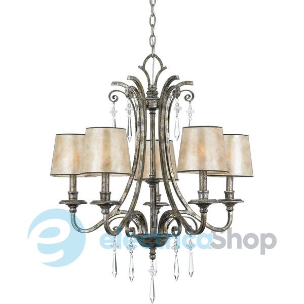 Люстра Elstead Kendra QZ/KENDRA5 Quoizel – это настоящая современная классика. Прекрасно впишется в любой интерьер и украсит дом своей элегантностью. Тканевые абажуры выполнены в жемчужном оттенке, украшены хрустальными каплями-подвесками. Изысканная ковка имеет серебряный (Mottled Silver) финиш.