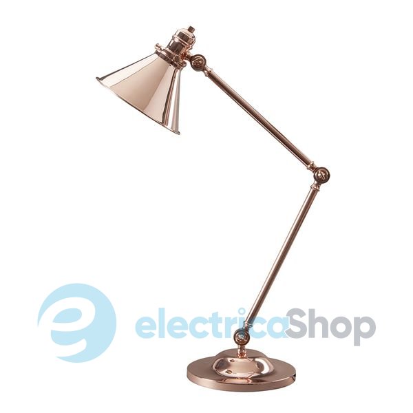 Настольная лампа Elstead Provence PV/TL CPR будет хорошо смотреться в помещениях, оформленных в стиле прованс, винтаж. Выполнена из метала. Цвет – Polished Copper (полированная медь). Осветительный прибор оснащен специальными шарнирами, что позволяет регулировать его положение.