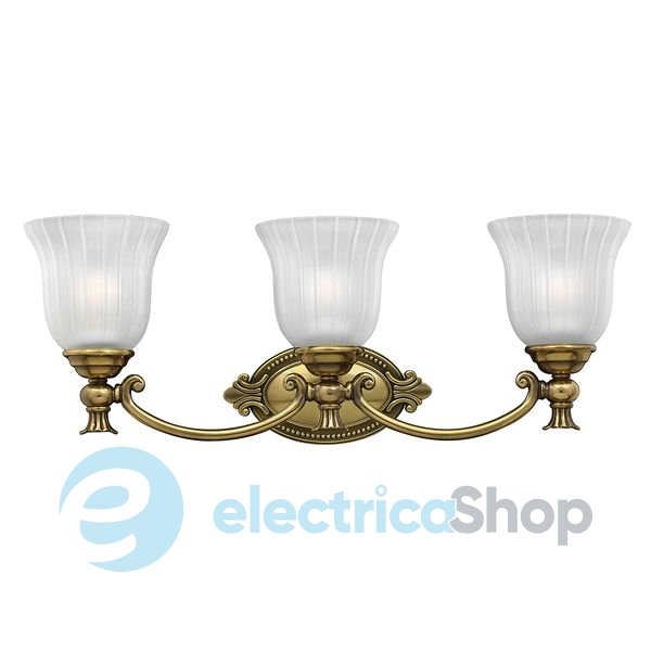 Бра Elstead Francoise (HK/FRANCOI3 BATH) Hinkley чудово доповнить сучасний інтер'єр. Має ступінь пиловологозахисту IP44 і може використовуватися у ванній кімнаті та кухні. Скляні плафони білого кольору підкреслює вишукане кування. Оздоблення арматури під поліровану латунь. В комплекті LED-лампи з патроном G9, колірна температура – 3000K (теплий білий).