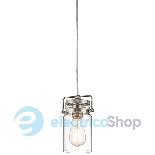 Незвичайний підвісний світильник Elstead KL/BRINLEY/MP NI Kichler у вінтажному стилі нагадує банки для консервування. Матиме чудовий вигляд в їдальні, на кухні, в кафе або ресторані. Виготовлений з металу кольору матового нікелю та прозорого скла.