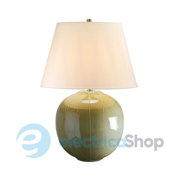 Настільна лампа Elstead (CANTELOUPE/TL) чудово впишеться в сучасний інтер'єр і створить гарні світлові акценти. Керамічну основу зеленого кольору покрито глазур'ю. Кремовий абажур зі щільної тканини, металевий акцент із покриттям під поліровану латунь.