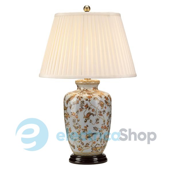 Настільна лампа Elstead (GOLD BIRDS/TL) стане справжньою окрасою будь-якого інтер'єру. Китайська блакитна порцеляна прикрашена малюнком із птахами та ягодами. Плісирований кремовий абажур гарно розсіює світло. Дерев'яна основа та акценти під зістарену латунь завершують композицію.