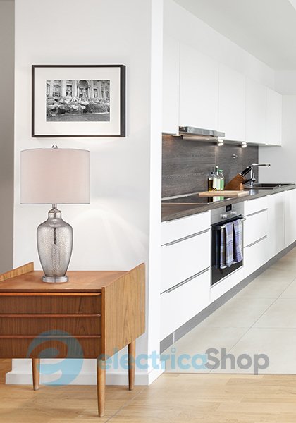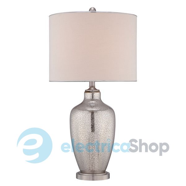 Настільна лампа Elstead (QZ/NICOLLS) Quoizel стане справжньою окрасою для будь-якого інтер'єру. Основа з ефектом мокрого скла, арматура металева під полірований нікель. Абажур із лляної тканини бежевого кольору зі сріблястим обідком.