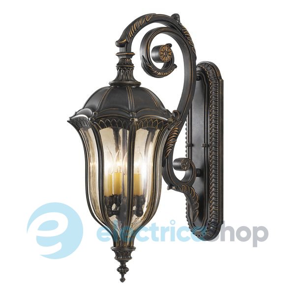 Вуличний настінний світильник Elstead Baton Rouge (FE/BATONRG/L) Feiss поєднує в собі декоративність і функціональність, дизайн натхненний старовинними ліхтарями. Основа конструкції з металу, оздоблення кольору «теплий горіховий» із позолотою. Тоноване скло створює гарний світловий акцент. Має високий рівень пиловологозахисту (IP44). Гарантія виробника – 3 роки.
