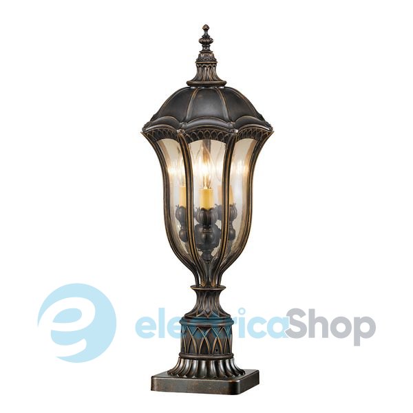 Вуличний стовп Elstead Baton Rouge (FE/BATONRG3) Feiss поєднує в собі декоративність і функціональність, дизайн натхненний старовинними ліхтарями. Основа конструкції з металу, оздоблення кольору «теплий горіховий» із позолотою. Тоноване скло створює гарний світловий акцент. Має високий рівень пиловологозахисту (IP44). Гарантія виробника – 3 роки.