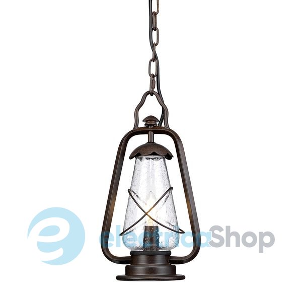 Вуличний підвісний світильник Elstead MINERS CHN призначений для зовнішнього освітлення. Виготовлений з металу кольору старої бронзи та скла. Колекція вуличного освітлення MINERS Elstead стилізована під вигляд старовинних традиційних ліхтарів.