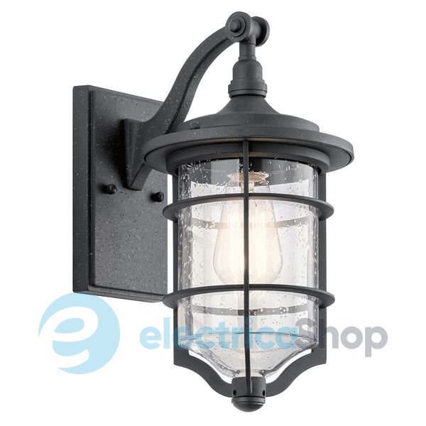 Вуличний настінний світильник Elstead Royal Marine KL/ROYALMARIN2/S Kichler стане стильною прикрасою для фасаду. Його дизайн натхненний ліхтарями в морській тематиці. Виготовлений зі сталі, оздоблення чорного кольору під старовину. Плафон з ефектом мокрого скла. Має високий рівень пиловологозахисту (IP44). Гарантія виробника – 3 роки.