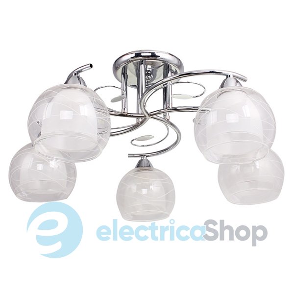 Стельова люстра Blitz Leuchten 1365-45 стане справжньою окрасою для сучасного інтер'єру. Арматура виготовлена з металу, скляні плафони білого кольору підкреслюють сріблясті деталі.