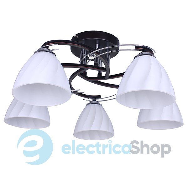 Стельова люстра Blitz Leuchten 1362-45 стане справжньою окрасою для сучасного інтер'єру. Арматура виготовлена з металу, скляні плафони білого кольору підкреслюють сріблясті деталі.