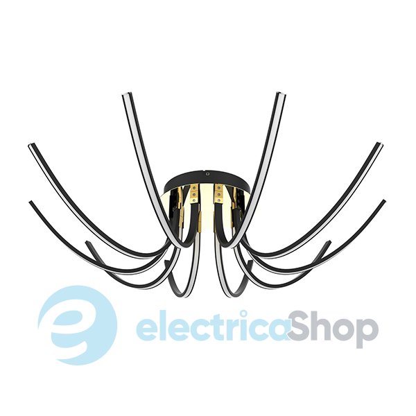 Стельова люстра Blitz Leuchten 0035-412 стане справжньою окрасою для сучасного інтер'єру. Арматура виготовлена з металу, поєднання чорного та золота створює акцент. LED-модули на 42W, колірна температура – 3000K (теплий білий), світловий потік – 2100 Lm.