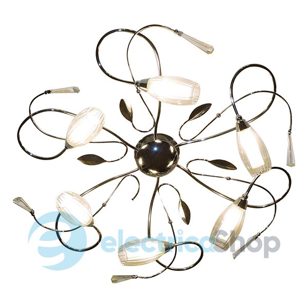 Стельова люстра Blitz Leuchten 1509-46 стане справжньою окрасою для сучасного інтер'єру. Арматура виготовлена з металу, фініш хром. Скляні плафони за формою нагадують квіти, гарно розсіюють світло.