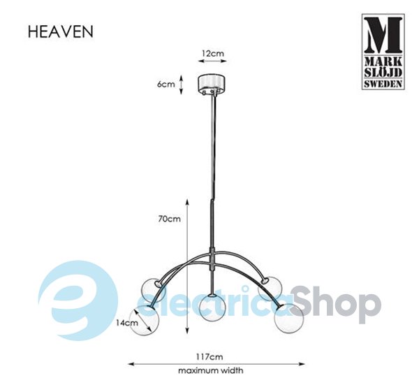 Люстра MARKSLOJD Heaven 107559 матиме гарний вигляд у сучасних інтер'єрах, стане справжньою окрасою приміщення. Виготовлена з металу та білого скла.