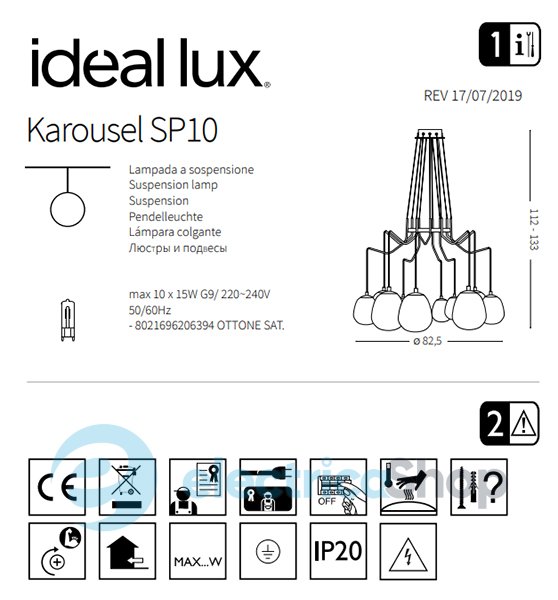Люстра Ideal Lux Karousel SP10 206394 підкреслить індивідуальність вашого будинку, матиме чудовий вигляд у сучасних інтер'єрах.